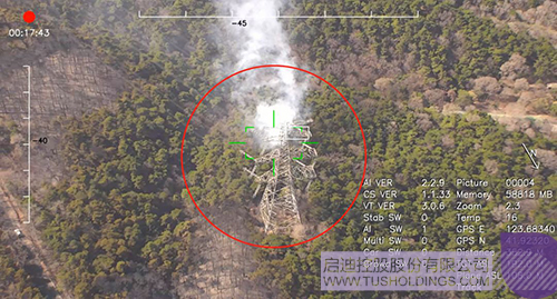 沈陽棋盤山火場,3V無人機搭載30倍光電吊艙盤旋觀察火勢