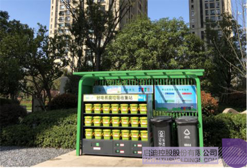 2018年,啟迪環境推出了一個個有“芯”的小綠桶,杭州蕭山市城鄉街道以及很多小區住戶都領到了一只“小綠桶”,用于盛放日常產生的餐廚垃圾。小綠桶主要針對居民的易腐垃圾,俗稱廚余垃圾。每個小綠桶都貼有芯片,通過物聯網稱重設備,實現易腐垃圾數據收集的自動上傳。通過“一戶、一桶、一芯”的“小綠桶”模式,可以得到小區內各住戶投放易腐垃圾的次數、重量及垃圾是否被正確分類等數據,從而反向指導運營模式提高垃圾分類正確率,實現生活垃圾前端精細化分類。目前啟迪環境已經在蕭山區300余個小區實現了易腐垃圾分類收運,每日易腐垃圾收運量達數十噸。在這些小區中,垃圾分類示范小區占28個,達到擬創建示范小區總數的88%。不止如此,啟迪環境還推出了好嘞垃圾分類服務亭,居民可通過好嘞APP或小程序掃碼,按照廢紙、玻璃、塑料、金屬等分類投放。通過好嘞服務亭的智能稱重端,將可回收物的相關數據傳輸到云平臺,從而大大實現了生活垃圾的源頭減量。另外,好嘞服務亭在便民、利民的同時,還起到了社區垃圾分類普及教育的作用。