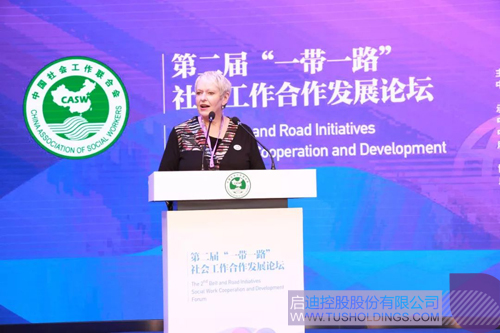 隨后,國際社工聯亞太區主席露絲·亨德森、國家開放大學社會工作學院執行院長史柏年發表主旨演講,探討“一帶一路”社會工作如何落地。露絲·亨德森表示,“一帶一路”倡議將凝聚沿線國家攜手同行,隨著政府部門和民間組織的共同推進,社會工作將發揮更重要作用。史柏年在以《“一帶一路”發展倡議與社會工作的使命》為主題的演講中提出, “一帶一路”建設是百年大計,在逐漸演變的過程中,可能會引起自然與社會環境的變遷,這將帶來“一帶一路”發展過程中的社會工作的新使命以及促進社會工作大發展的新機遇。