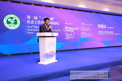 廣西社會工作協會會長雷偉民致辭時介紹了廣西社會工作的發展情況,廣西有持證社工4700人,社會工作服務機構170多家,社會工作在參與扶貧攻堅、社區幫扶、醫療衛生等社會工作服務領域發揮了積極作用,服務質量和專業水準逐步提升,服務效果得到社會各界和廣大人民群眾的認可與肯定。他強調,“新時代社會主要矛盾的轉化,既催生了社會工作發展的新動力,也拓展了社會工作發展的新空間。第二屆‘一帶一路’社會工作合作發展論壇是一次很有前瞻性的重大活動,必將為廣西社會工作發展帶來新的推動力。我們將積極消化、吸收本次論壇的成果,為廣西社會工作的實踐提供借鑒。”