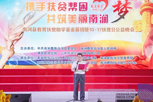 10月16日晚,以“攜手扶貧幫困,共筑美麗南澗夢(mèng)”為主題的南澗縣教育扶貧助學(xué)基金募捐暨10·17扶貧日公益晚會(huì)成功舉辦。大理州扶貧辦主任李德琦,吉向陽(yáng)、王紹基、沈文榮、黃希里,南澗縣委副書(shū)記茶向華、武紹華,清華大學(xué)云南校友會(huì)秘書(shū)長(zhǎng)萬(wàn)林,清華校友、中國(guó)建筑技術(shù)集團(tuán)有限公司副總建筑師呂絮飛,清華大學(xué)掛職干部、南澗縣政府黨組成員金峰,南澗縣西山村委會(huì)第一書(shū)記沈正波等出席晚會(huì),陳禹作為啟迪代表受邀參加。